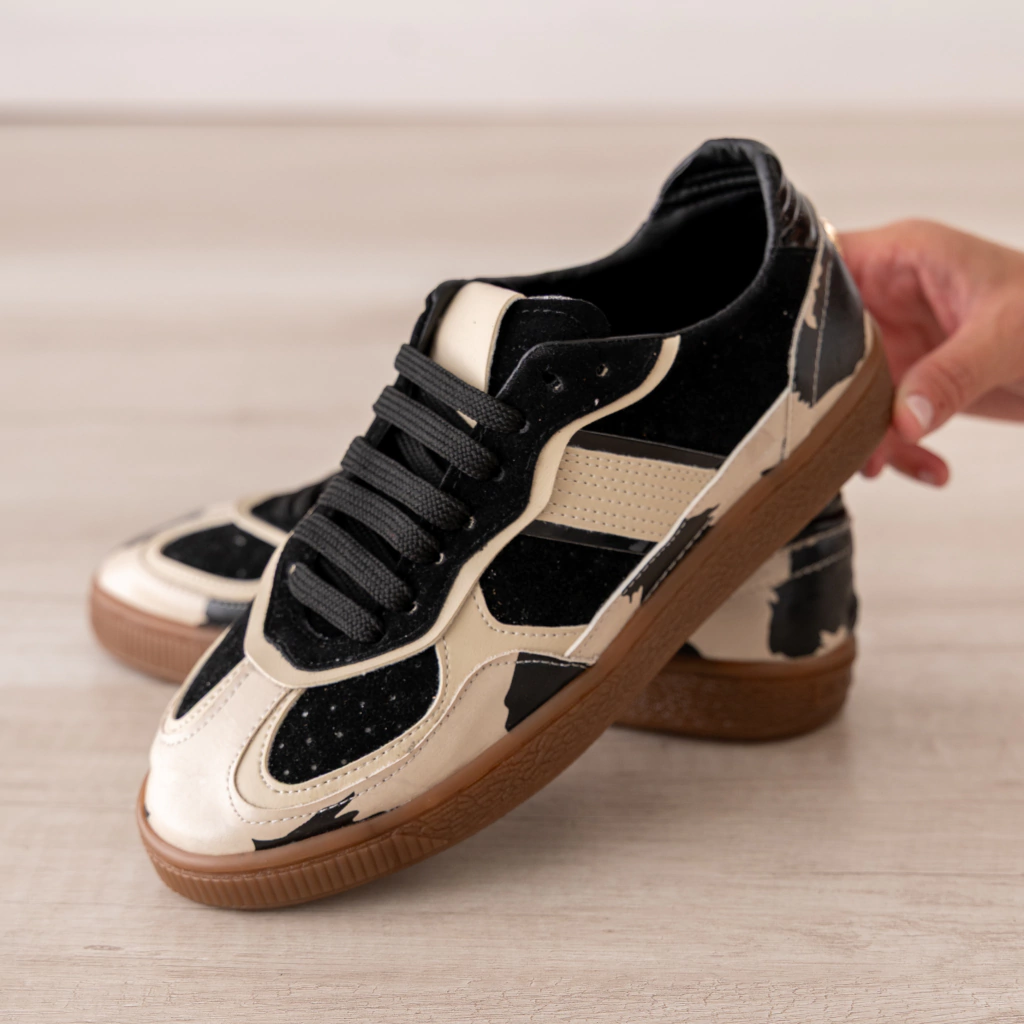 Zapatilla Cusco Combinada: la propuesta ideal para quienes quieren marcar tendencia en 2025 con un diseño único y original. Esta zapatilla se destaca por su estampa de vaca, una moda que pisa fuerte y que aporta un toque atrevido y moderno a cualquier look.
